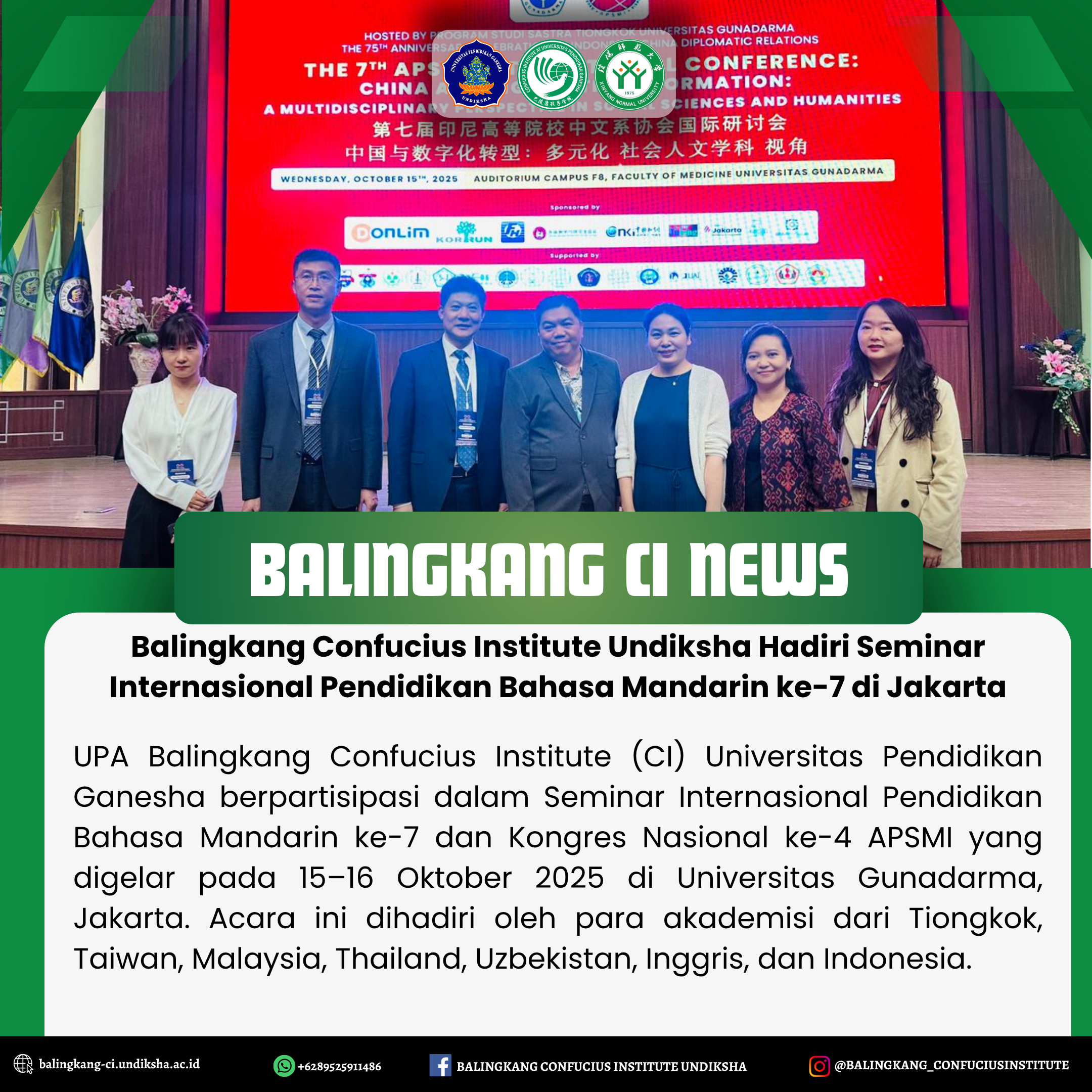 Balingkang Confucius Institute Hadiri Seminar Internasional Pendidikan Bahasa Mandarin ke-7 di Jakarta