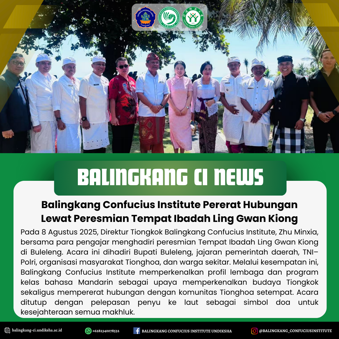 Balingkang Confucius Institute turut hadir dalam peresmian Kuil Lingyuan di Buleleng