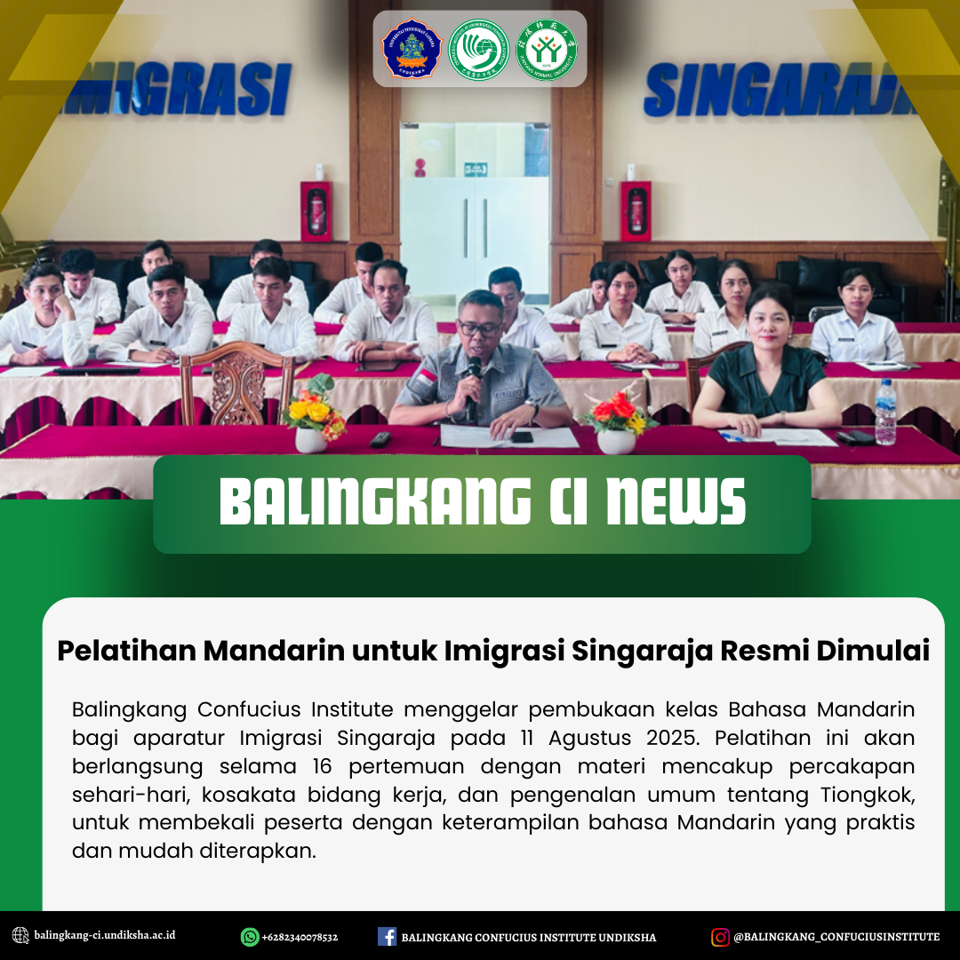 Balingkang Confucius Institute resmi membuka program pelatihan bahasa Mandarin bagi aparatur Imigrasi Singaraja.