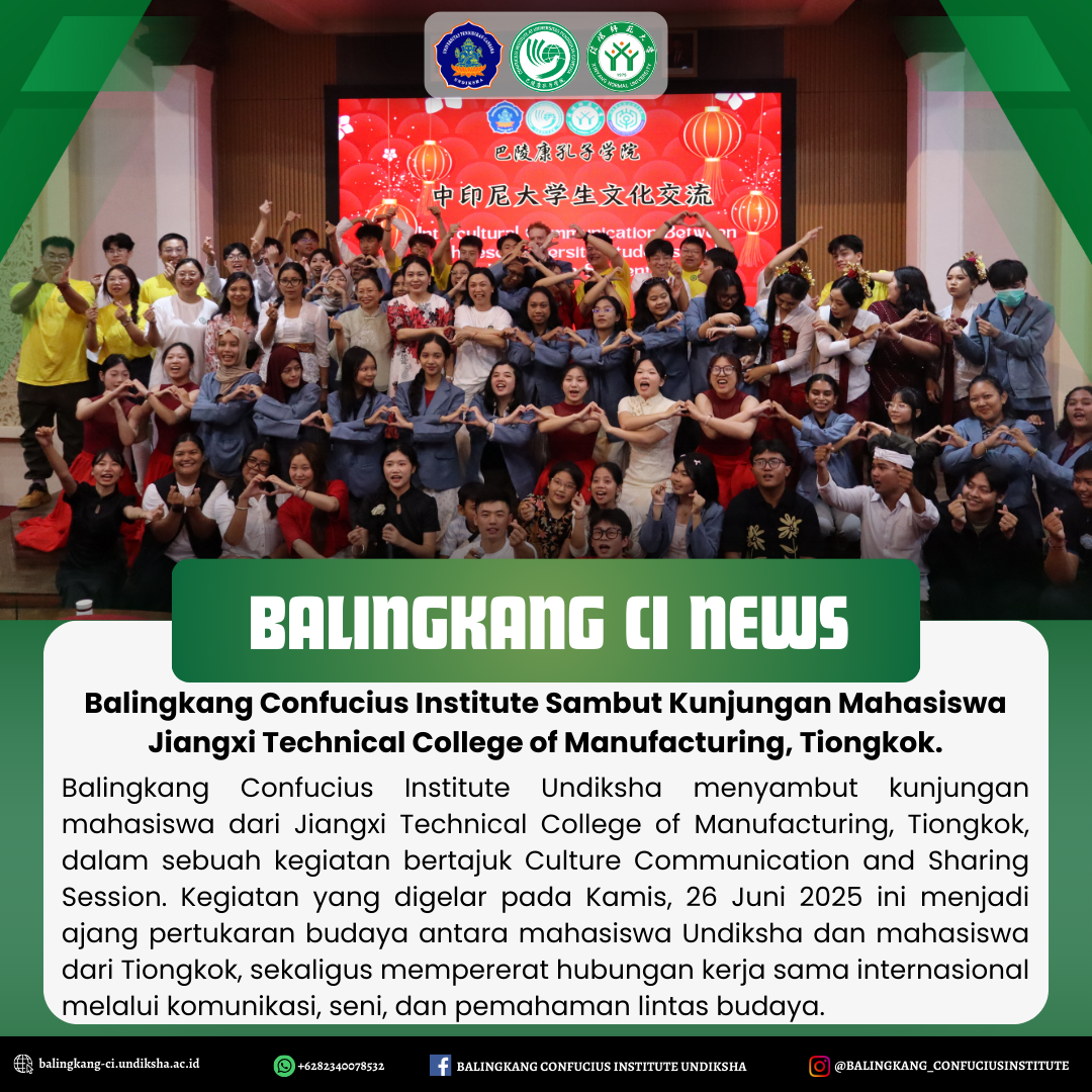 Balingkang Confucius Institute Sambut Kunjungan Mahasiswa Jiangxi Technical College of Manufacturing, Tiongkok.