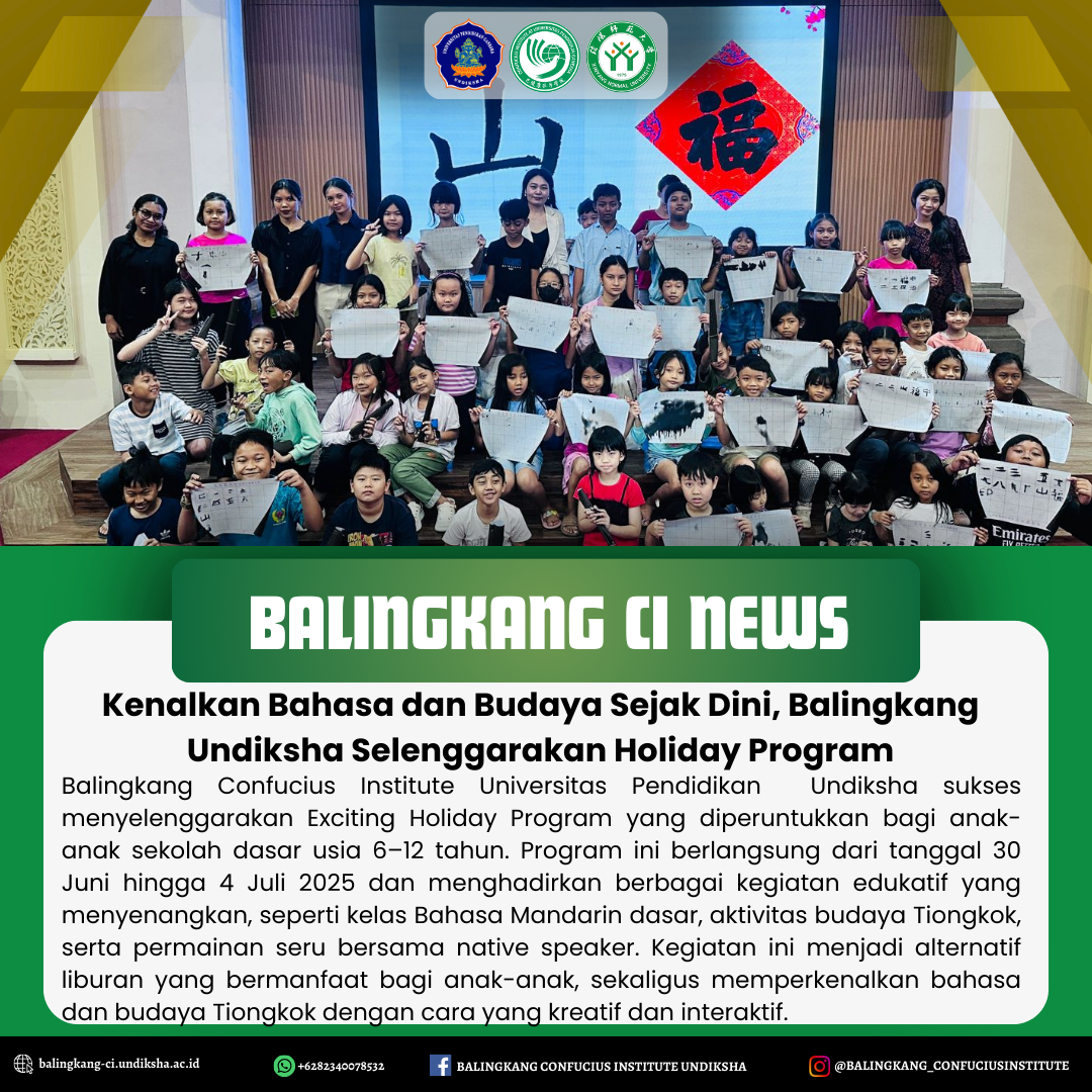 Balingkang Confucius Institute Undiksha Gelar Holiday Program Seru untuk Anak SD