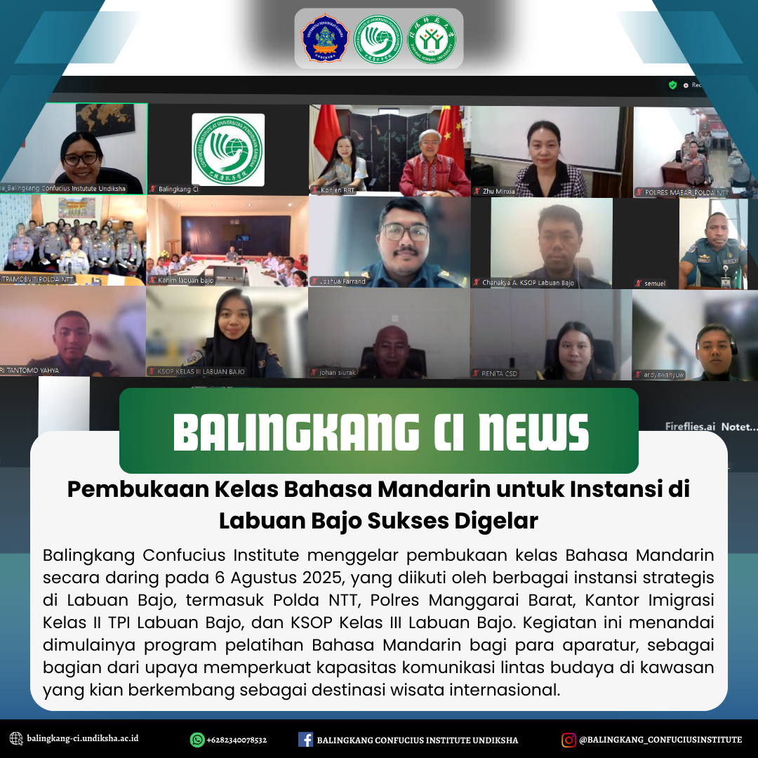 Pembukaan Kelas Mandarin di Labuan Bajo, Balingkang Confucius Institute Gandeng Instansi Strategis