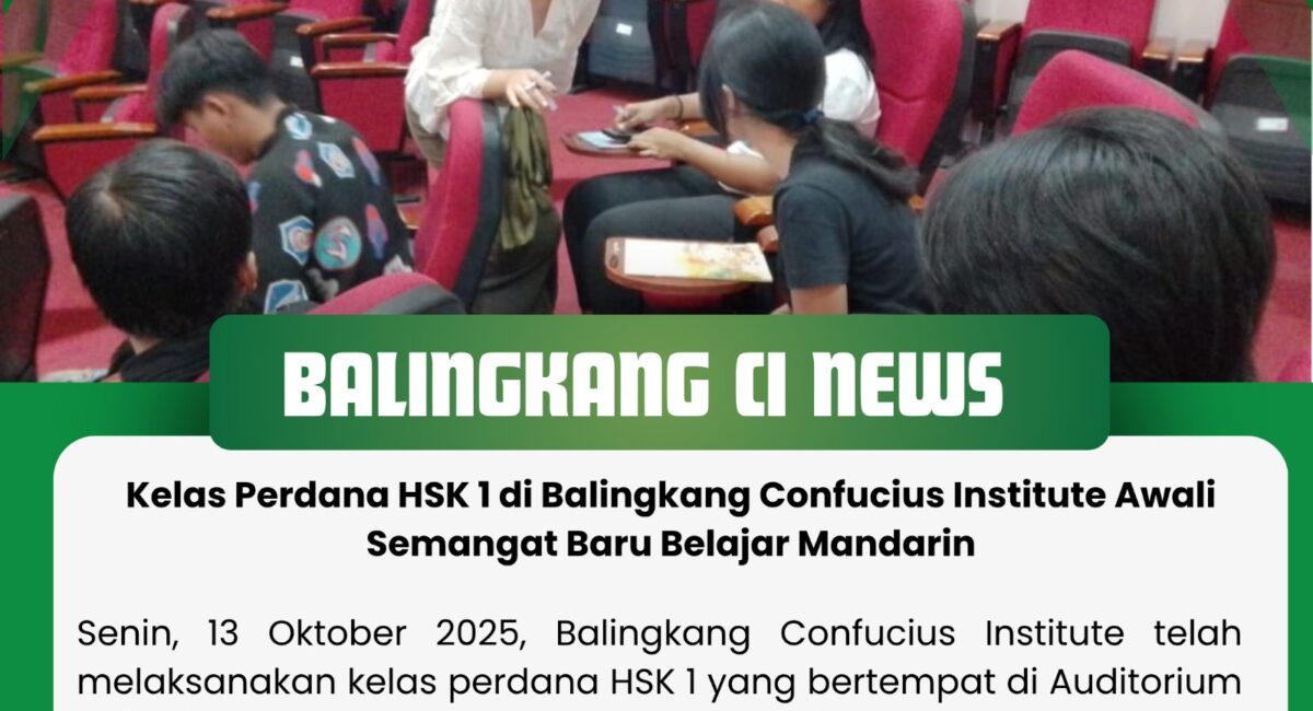 Pada 13 Oktober 2025, Balingkang Confucius Institute resmi melaksanakan kelas perdana HSK 1 yang bertempat di Auditorium Balingkang. Kegiatan ini menjadi awal dari rangkaian program pembelajaran Bahasa Mandarin bagi peserta baru yang antusias untuk memulai perjalanan belajar mereka.